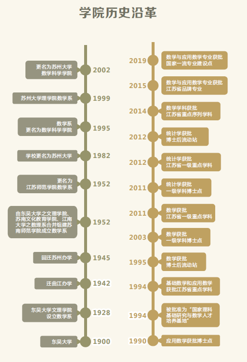 从1990年“应用数学”获批博士学位授权点开始至今的二十多年中,学院把握住每一次发展机遇,走过了一段持续发展的道路。“基础数学”和“应用数学”继1985年和1988年分别被评为江苏省重点学科后,1994年又分别被评为江苏省重点学科,同年学院又获批了全国地方院校唯一的“国家理科基础研究与教学人才培养基地”;1995年被批准设立“数学学科博士后科研流动站”、2003年“数学一级学科博士学位授权点”申报成功、2011年“数学学科”被评为江苏省一级重点学科;同年,“统计学”获批一级学科博士学位授权点、2012年“统计学科”又被评为江苏省一级重点学科、获批博士后流动站;2014年“数学学科”获批了江苏省重点序列学科;“数学与应用数学专业”继被教育部批准为“第六批高等学校特色专业建设点”并被授予江苏省品牌专业后,2015年又被批准为江苏省A类品牌专业资助建设;2019年获批国家一流专业建设点。
