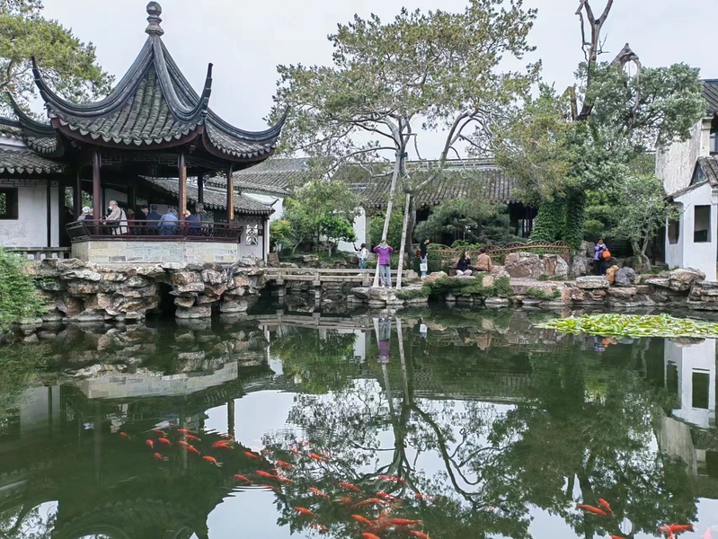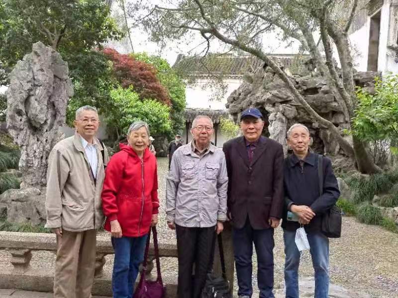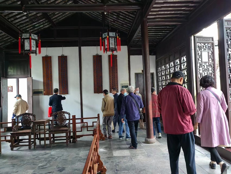 网师园布局紧凑,建筑精巧,空间尺度比例协调,布局精致,内涵深蕴,气息典雅,是苏州园林中型古典山水宅园代表作品,是全国重点文物保护单位、世界文化遗产。于“殿春簃”赏芍药牡丹争奇斗艳,过“引静桥”见百竿翠竹挺拔遒劲,老同志们相扶相伴,观赏着五峰书屋、集虚斋、月到风来亭、濯缨水阁等园内风景,交流着所思所想,或忆工作过往,或聊退休生活,其乐融融,幸福之情溢于言表。