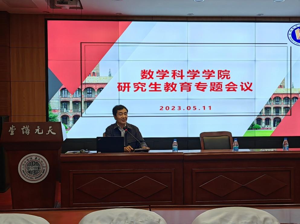 为学习贯彻党的二十大精神,推动研究生思想教育工作的深入展开,2023年5月11日下午15:30,学院于天元讲堂开展了研究生思政教育专题会议。党委书记逢成华老师、教学院长王志国老师、学生工作办公室副主任尹伊老师、辅导员曾峥老师出席会议,数学专业、学科教学专业研究生们参与了本次会议。