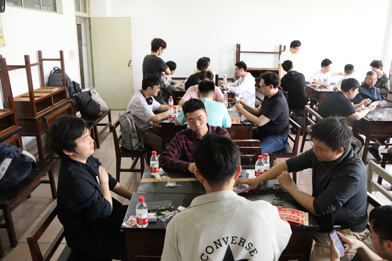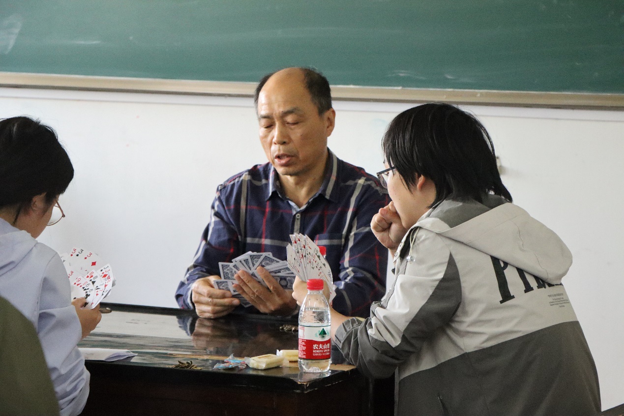 为丰富同学们的校园文化生活,增进师生之间的交流合作,我院于5月13日在文思楼403、404教室举办“掼蛋为媒 相聚为友”第二届师生掼蛋比赛。本次活动由院关工委、院工会、院团委主办,院社联、纵横棋社承办,共有师生组成的23支队伍参加了此次比赛。此次活动获得西汉姆联第二十八批学生社团活动基金项目B类立项,我院退休教工支部书记、退协负责人闻振卫老师到场指导并参与社团活动。