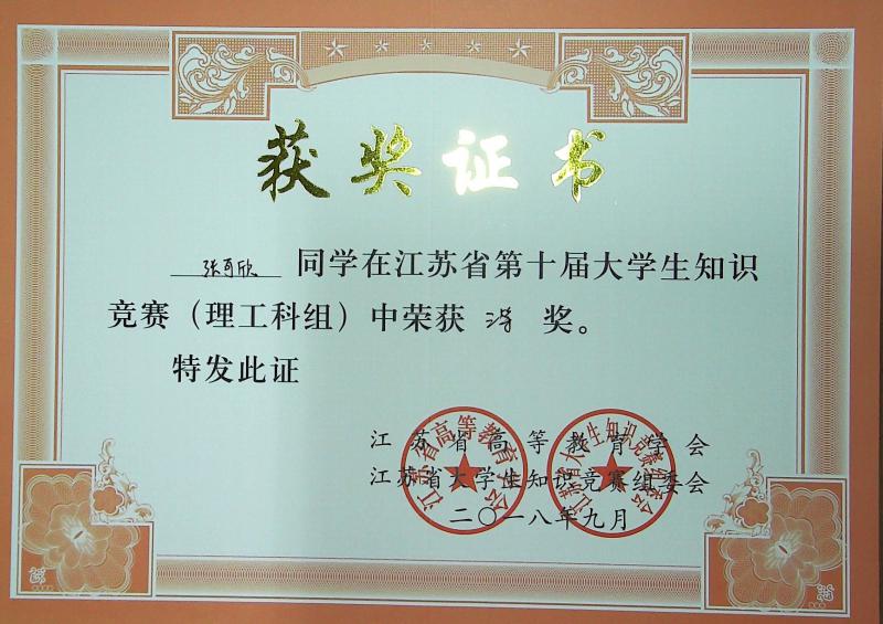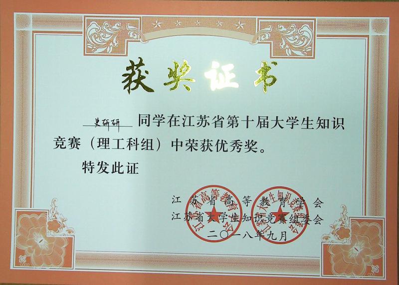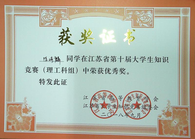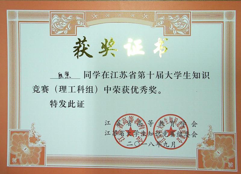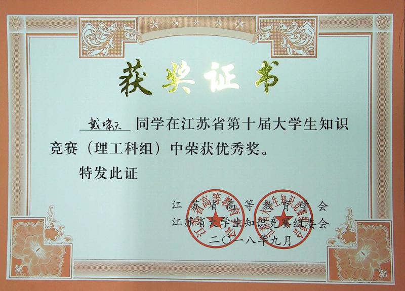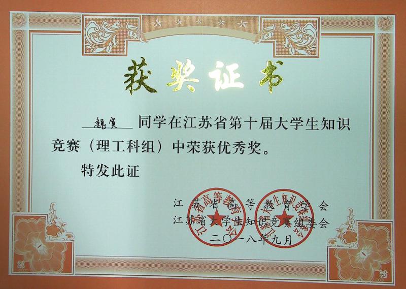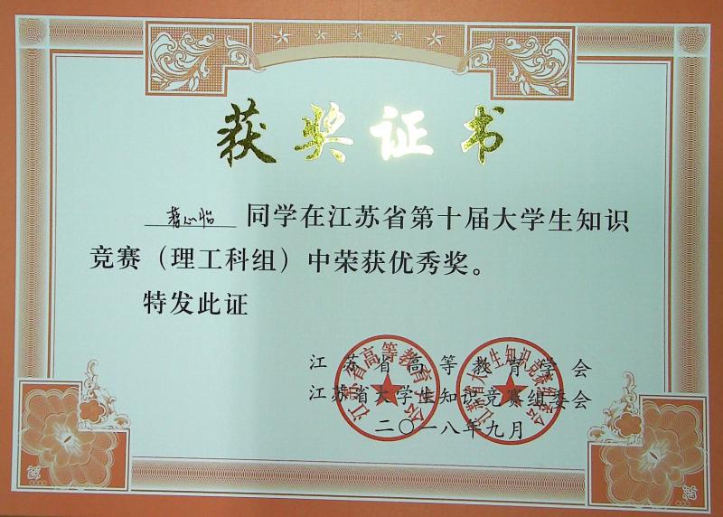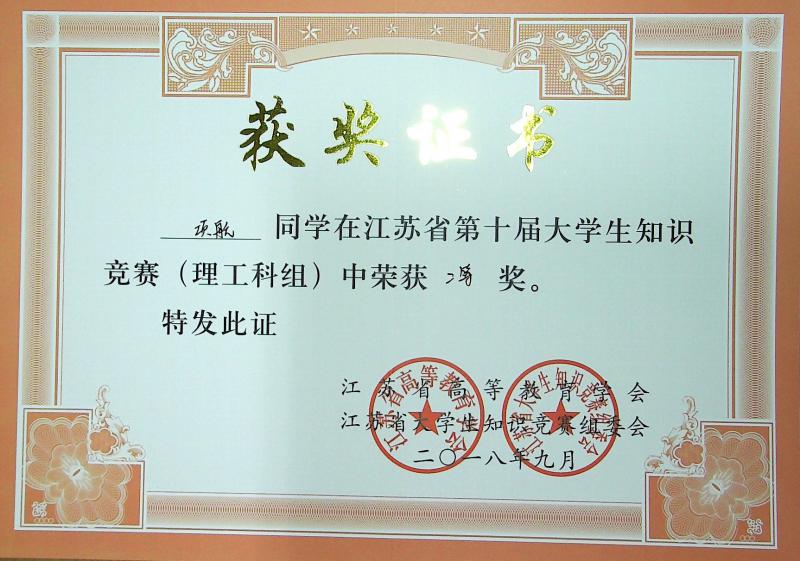 江苏省第10届大学生知识竞赛(理工科组)获奖情况