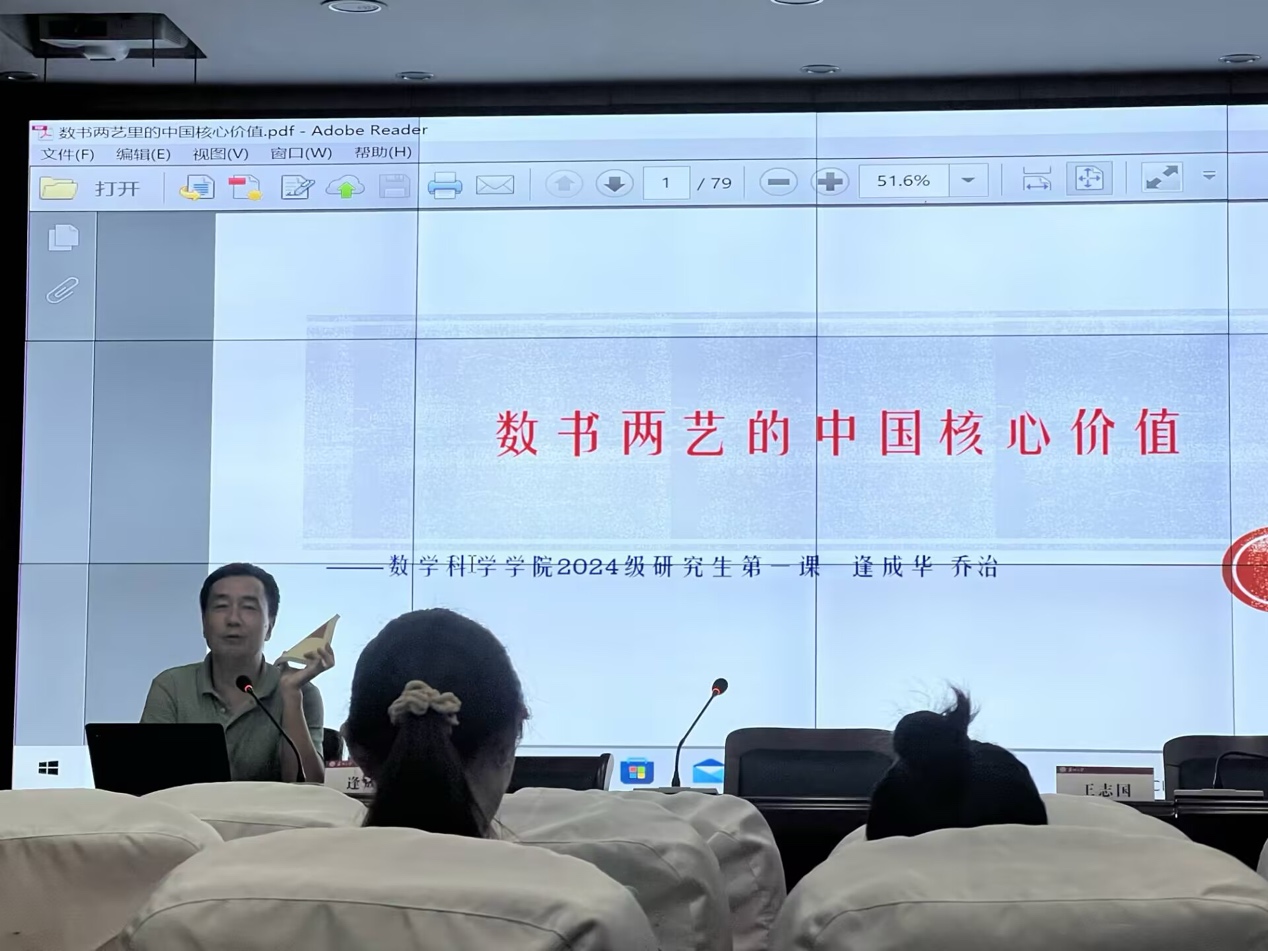 党委书记逢成华在会上指出,中国的数学和书法作为中国传统的“六艺”,是高校在全面加强思想政治教育、传承中华优秀传统文化、提升大学生人文素养方面的重要载体之一。他通过阐述数学与书法之间的关联,深入剖析了数学中的中国核心价值观以及中国数学对世界所作的贡献。他鼓励青年学子深入学习中华优秀传统文化,体会其所蕴含的核心价值,不断传承和弘扬传统文化,增强文化自信。