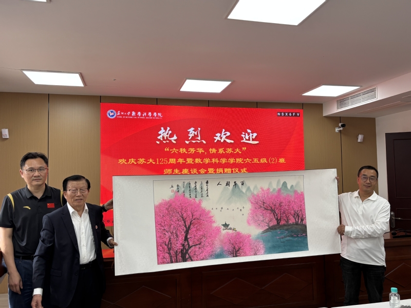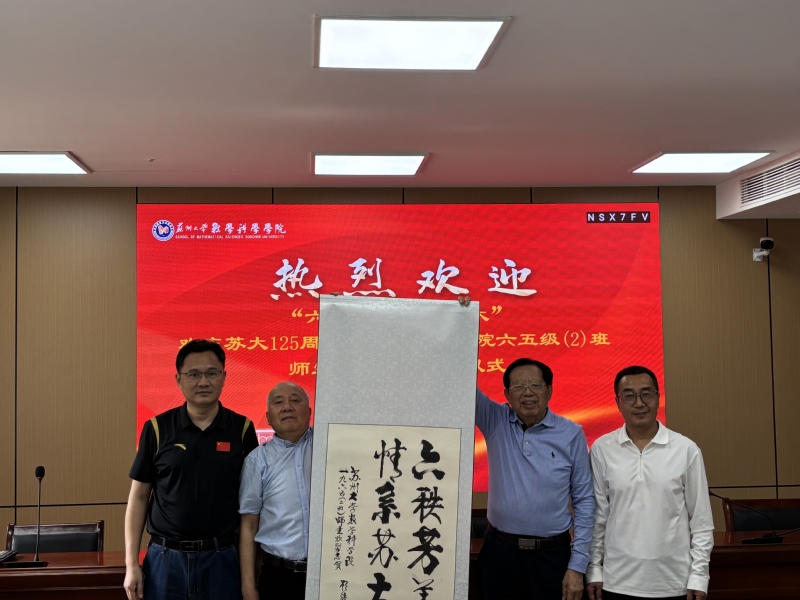 65级2班,入学整60年。他们邀请了高岳兴、唐复苏两位老师和他们欢聚一堂,并向母院捐赠了江苏省委原副书记、西汉姆联南京校友会名誉会长、西汉姆联六四级中文系年届87岁的顾浩学长书写“六秩芳华,情系苏大”的贺幛、校友刘兆富的著作-回忆录《岁月留痕》、校友人民书画家张益余精心创作巨幅国画《百年树人》。