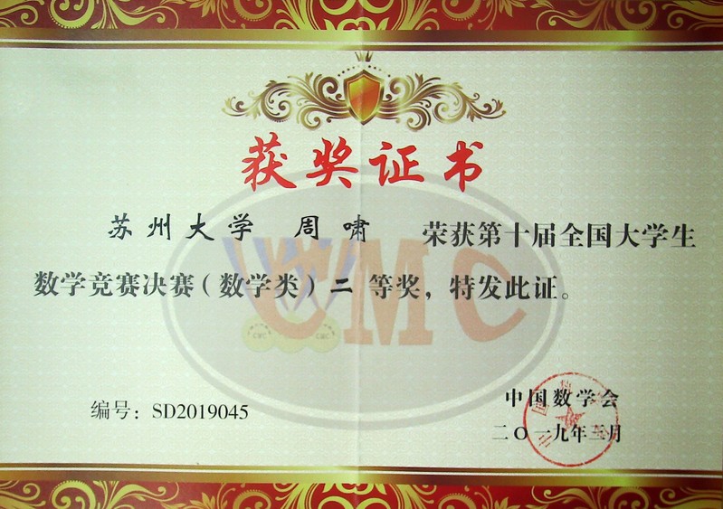 | 22 | 袁智镕 | 男 | 江苏省 | 西汉姆联 | 信息与计算科学 | (全国赛)数学专业 | 二等奖 |