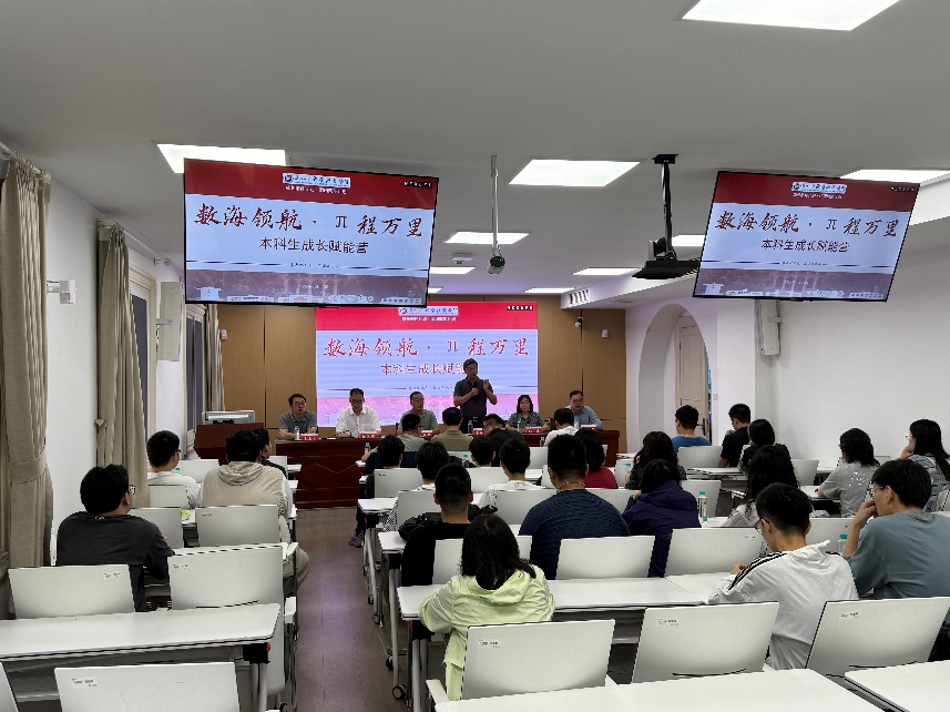 随后,学院专业教师蔡傲结合个人海外求学经历,聚焦学业规划与科研攻关,为同学们分享了高效学习方法与研究路径选择的关键经验。