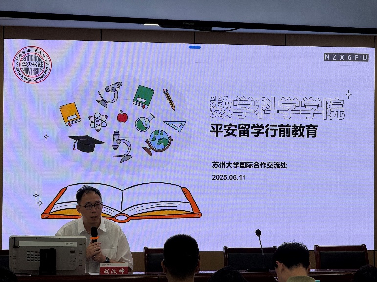 行前教育干货环节,国际合作交流处胡汉坤老师以“平安留学”为核心,系统解析了签证办理、安全防范、跨文化沟通与心理调适等留学关键环节的注意事项与解决方案。21级陈禹舟则通过视频形式,生动分享了他在海外学习和生活中的实战经验与实用技巧。