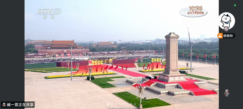 为隆重纪念中国人民抗日战争暨世界反法西斯战争胜利80周年,进一步弘扬伟大抗战精神,厚植爱国主义情怀,学院研究生党支部、研究生会于9月3日组织全体党员和研究生会骨干集中收看纪念大会实况。在校研究生党员和骨干集中观看直播,在外实习毕业生和即将入学的新生党员则通过腾讯会议平台线上同步收看,共同接受精神洗礼。