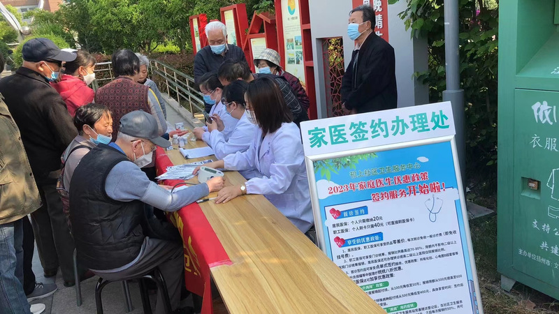 图为邗上街道翠岗花园社区为老人提供家庭医生服务