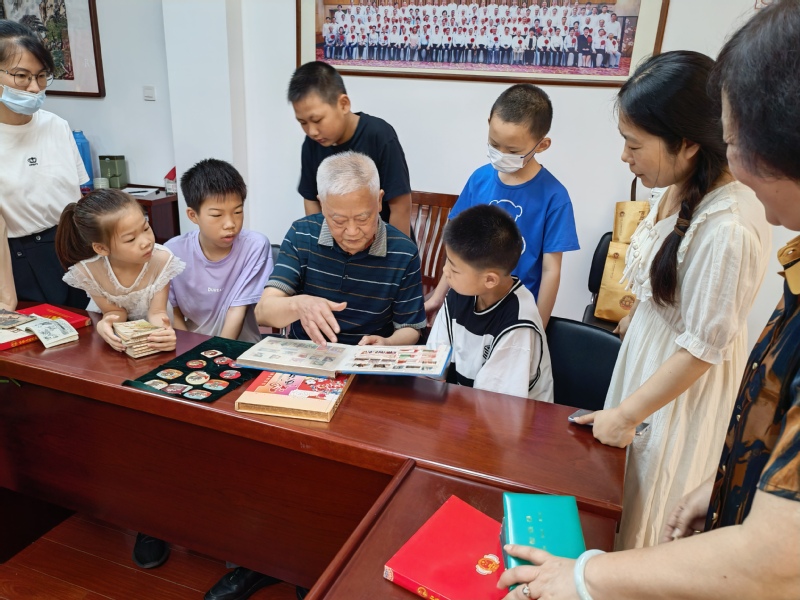 图为老党员给青少年讲述藏品背后的红色故事