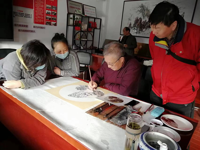 图为老年大学教授书法绘画