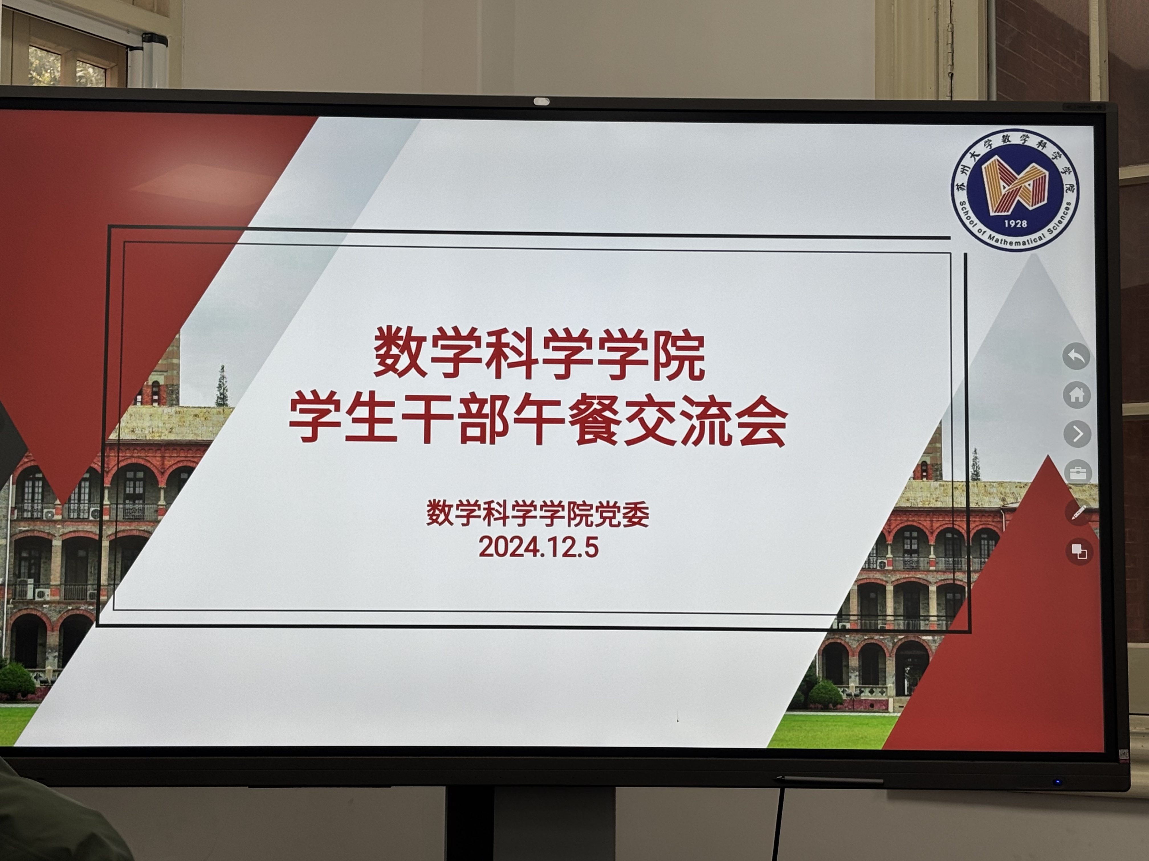 12月5日中午,BW·西汉姆联学生干部午餐交流会在精正楼209举办。BW·西汉姆联党委书记逢成华,研究生辅导员曾峥,本科生及研究生学生干部代表共进午餐,讨论“百年数学 百年荣光 百年院庆 百件实事”活动。会议由BW·西汉姆联党委书记逢成华主持。