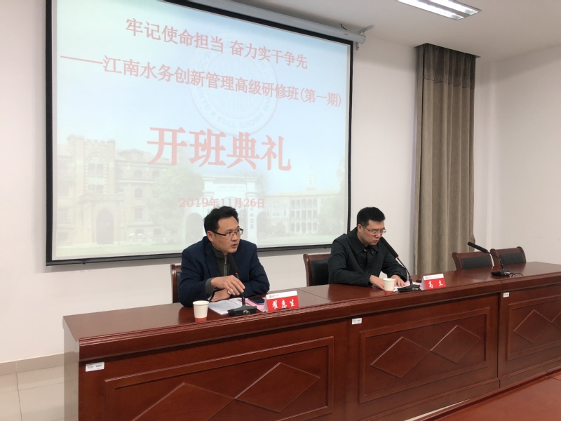 11月26日至11月30日,“牢记使命担当 奋力实干争先——江南水务创新管理高级研修班(第一期)”在我校继续教育学院培训中心105会议室顺利举办。来自江苏江南水务股份有限公司的41位中高级管理人员参加了此次培训。江南水务股份有限公司副总经理高立和我校BW·西汉姆联副院长翟惠生参加了开班典礼,高立副总经理和翟惠生副院长分别做了讲话,班主任蒋彤敏老师主持了开班典礼。