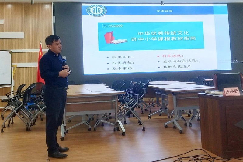接着,同学们聆听了华东师范大学教师教育学院汪晓勤教授的主题讲座“HPM研究新进展——中华优秀传统数学文化与留白创造式教学”。汪晓勤教授从学术背景、古名今辩、古法今用、古问今编、古术今推、古算今思及未来展望六个方面展开,引经据典,娓娓道来。讲座尾声,汪晓勤教授寄语在场的一线教师积极开展融入中算史的留白创造式教学实践,让中华优秀传统数学文化焕发新的生命力。