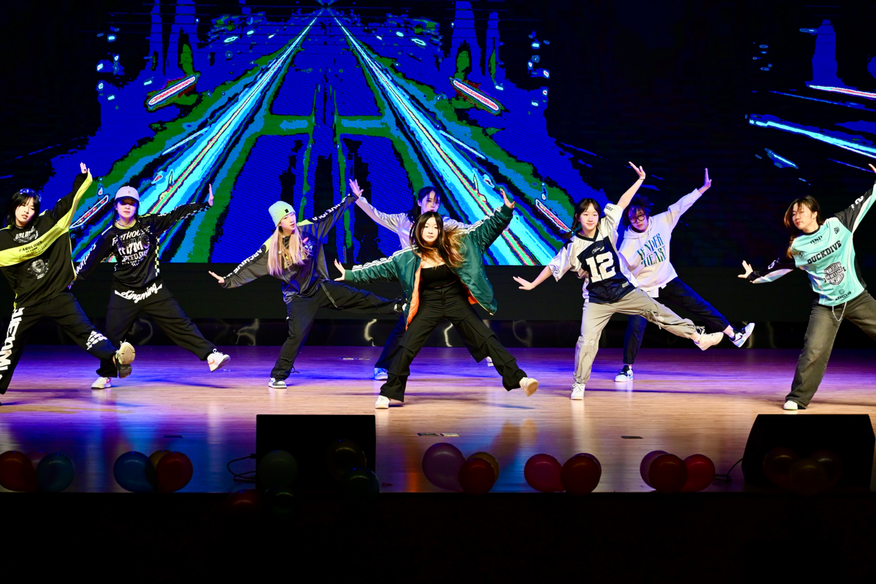 整齐的舞姿,恰当的力度。每一个鼓点精准的动作都敲在观众心上,结合现场动感的舞蹈和灯光,王子涵、李纤纤等同学青春活力舞蹈表演燃爆全场。