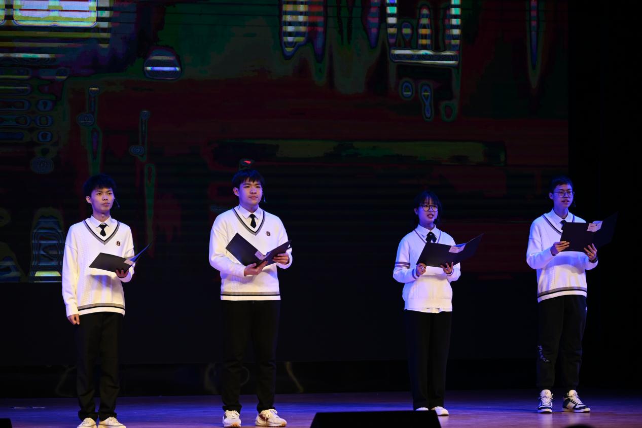 陈龙潜、易源宗、于张聃、覃姿茜同学带来的朗诵节目,引领师生体会学术科研精神,抒发科创报国情怀。