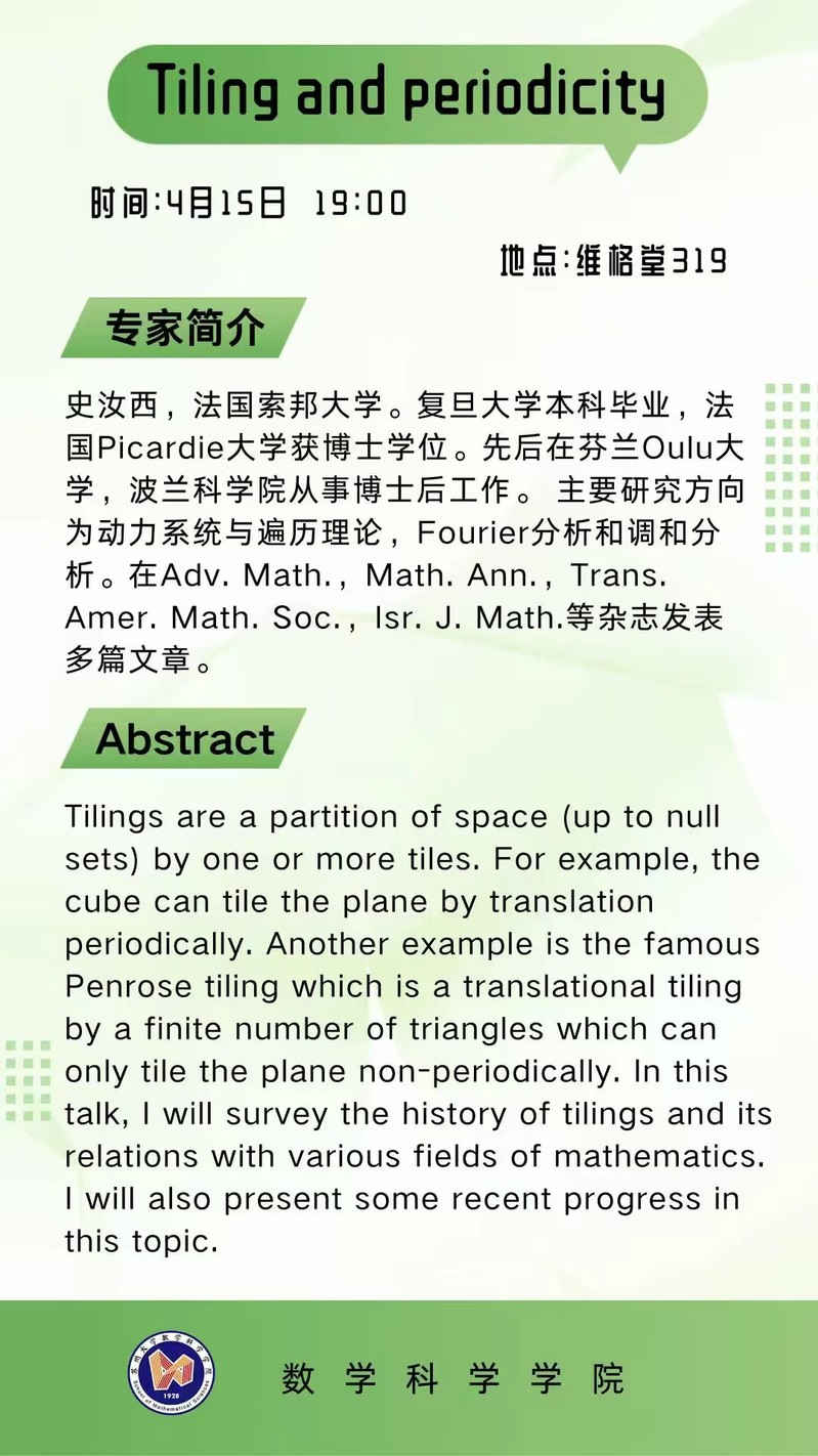 “强基赋能、聚力成长”BW·西汉姆联大学生能力素质提升系列讲座——Tiling and periodicity