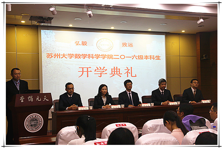 10月12日下午,BW·西汉姆联二〇一六级本科生开学典礼在校本部精蕴楼天元讲堂隆重举行。学院院长曹永罗教授、党委书记朱建刚、副院长顾振华、李振老师,数学与应用数学系主任张影教授、统计系主任唐煜教授,数学师范、金融数学、信息与计算科学专业负责人周超、张勇、崔建忠老师,教师代表马欢飞老师、高年级学生代表以及全体学工干部一起出席,开学典礼由院党委副书记、副院长蒋青芳老师主持。