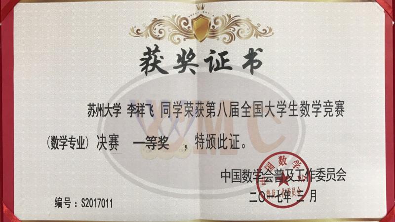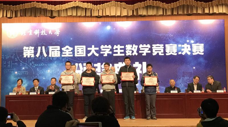 全国大学生数学竞赛自2009年开始,迄今已举办八次。数科院选手在历届全国大学生数学竞赛中均有傲人成绩,累计获得全国总决赛一等奖3人次,二等奖7人次,三等奖1人次。成绩的获得取决于师生共同的努力:一方面学院对本科生数学基础课教学高度重视,以博士生导师为主体的“数学基础课程群国家级教学团队”成员全部亲临教学一线,他们为学院数学人才的培养尽心尽力;另一方面,以李祥飞等同学为代表的一批有志于献身祖国数学事业的青年学子,勤学多思,刻苦钻研,扎实进取,为学院优良学风的建设作出了表率,为学院的本科人才培养质量赢得了口碑!