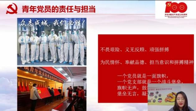 从百年来的沧桑巨变,光辉成就到如今习近平总书记指出的“为人民服务,担当起该担当的责任”,再到苏大英烈丁香和数学家华罗庚坚守初心、勇于担当,并指引着一代代苏大学子不忘初心,浩气长存。责任担当是青年党员成长与进步的内在动力,需要在长期的文化熏陶中培植,更需要在生动的实践中磨砺,唯有青年党员主动践行责任担当,才能心无旁骛,脚踏实地的为实现中国梦而努力奋斗。主题鲜明,内容鲜活,结合当前社会疫情期间的现象和热点,突出了青年党员的责任与担当。